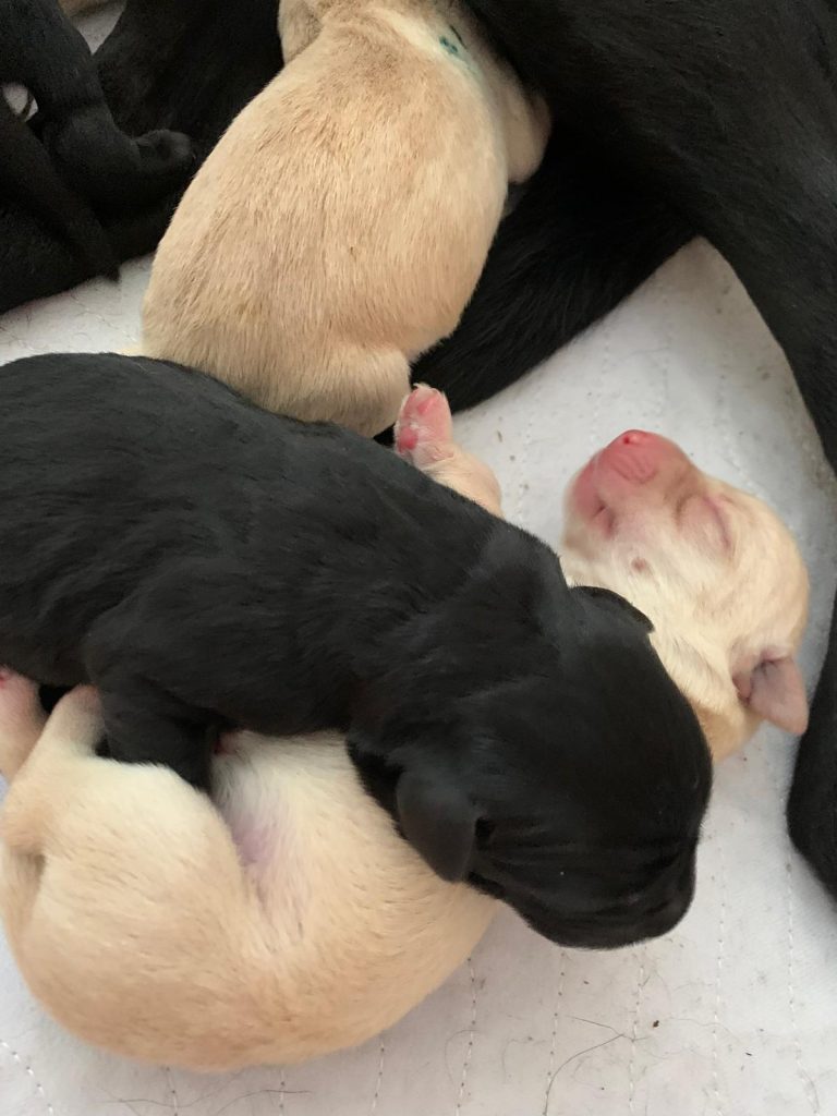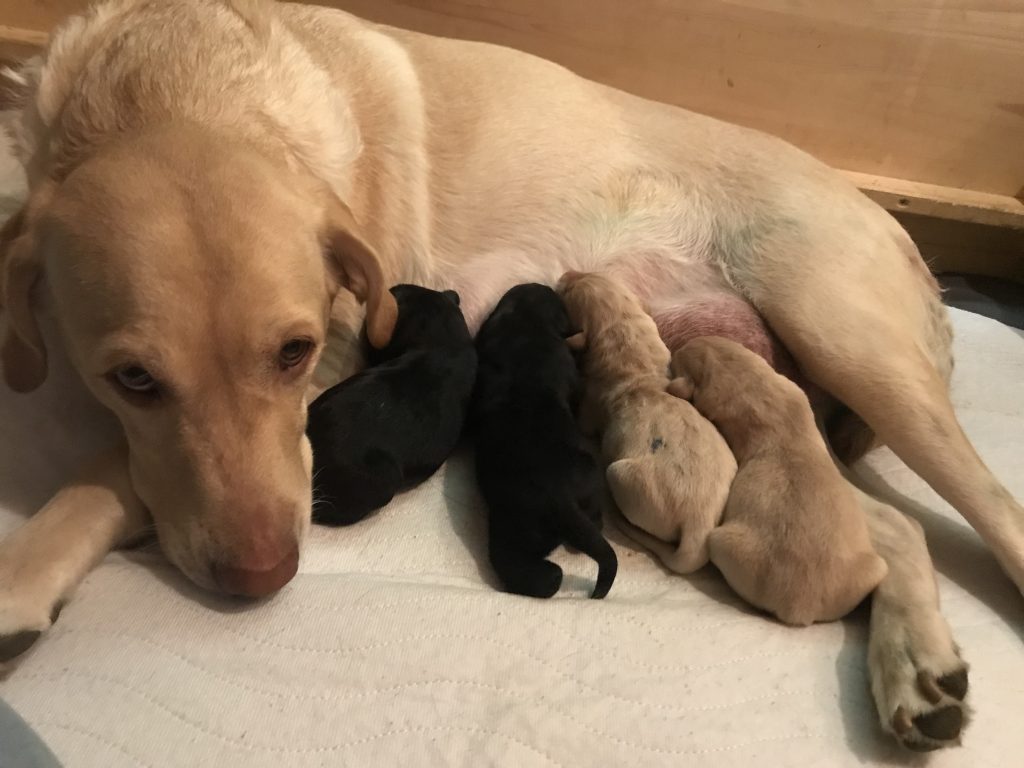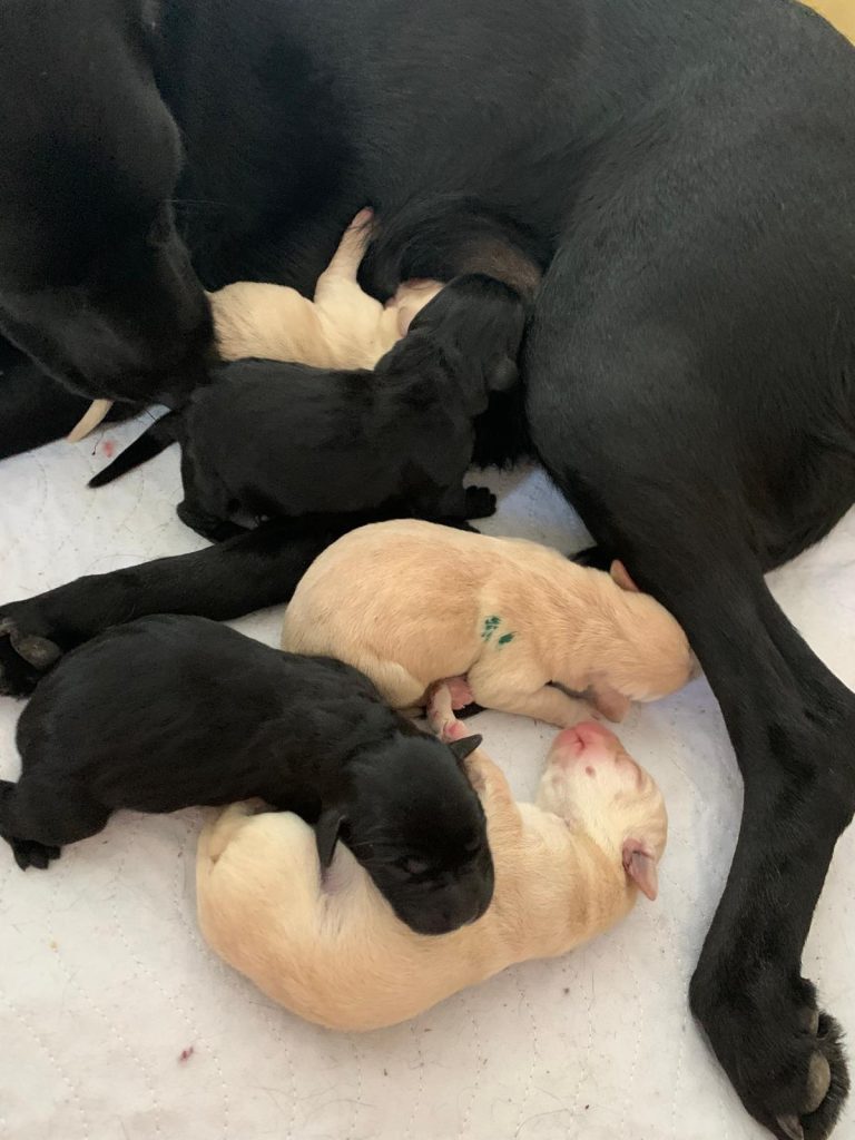Unsere Ginger hat am 18.06.2025 fünf gesunde Welpen auf die Welt gebracht! Wir freuen uns über zwei schwarze Rüden und drei gelbe Hündinnen!